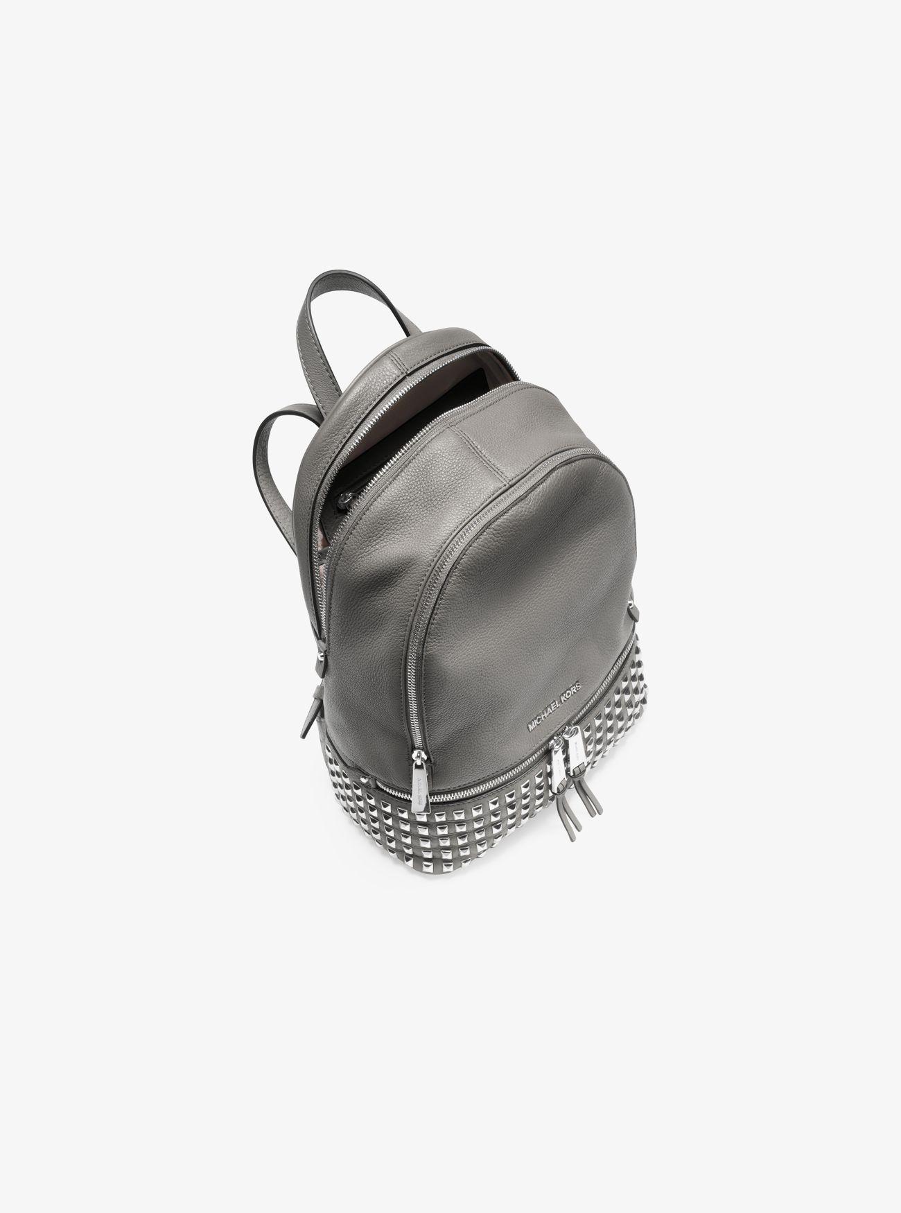 30+ Rhea Medium Studded Pebbled Leather Backpack Pics. With its multiple zipper pockets and delicate shoulder straps, it's a feminine take on the enduring design. We love how the pyramid studs lend an edgy punctuation to the pebbled leather exterior.